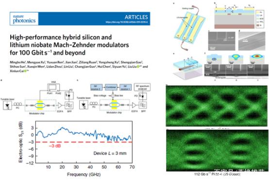 中山大學(xué)蔡新倫教授和華南師范大學(xué)劉柳教授團(tuán)隊做的新型大帶寬、高速片上LN調(diào)制器(SiP+LN),獲得70GHz帶寬,實(shí)現(xiàn)超過100Gb/s速率傳輸。