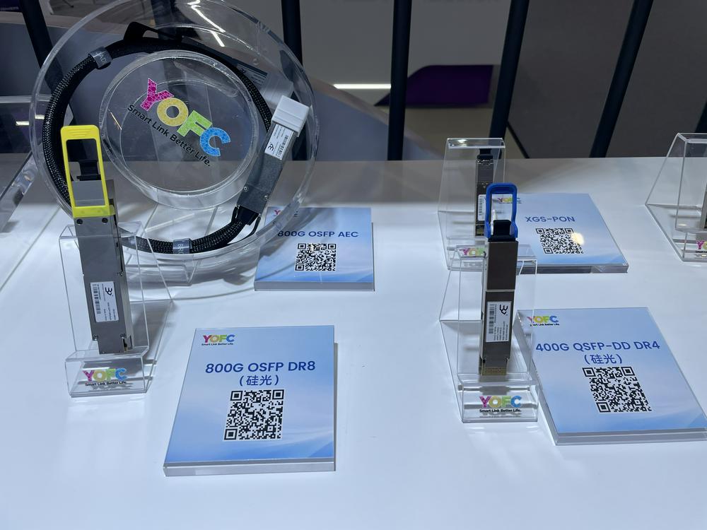 財聯(lián)社記者注意到,主攻光纖預制棒、光纖、光纜的長飛光纖此次亦展示了其光模塊產(chǎn)品。目前其800G產(chǎn)品已商用,1.6T正在研發(fā)中。展臺工作人員坦言,“我們2018年開始做光模塊,切入時間相對較晚,因此市場份額沒有很大。”