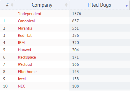 (以上信息來(lái)自OpenStack社區(qū)最新數(shù)據(jù),http://stackalytics.com/?metric=filed-bugs)