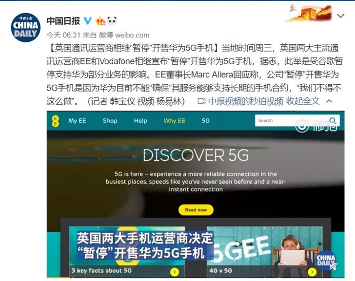 文章標題:英國運營商“暫停”開售華為5G手機:我們不得不這么做