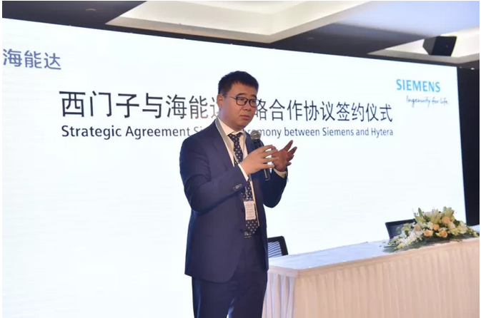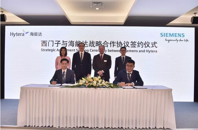 海能達高級副總裁曾華、西門子(中國)有限公司執(zhí)行副總裁王海濱代表雙方公司簽署戰(zhàn)略合作協(xié)議。