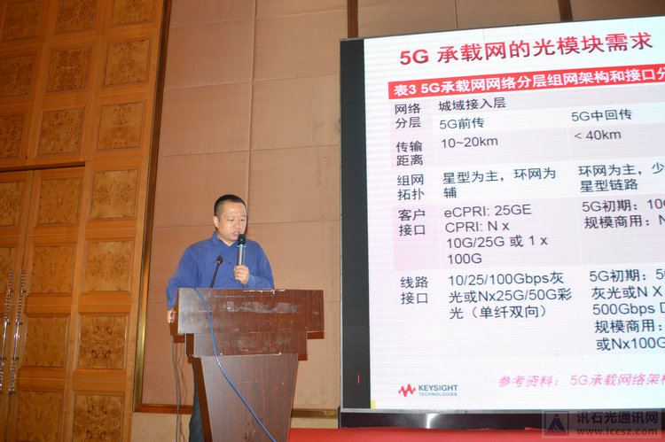 第二個主題演講是由是德科技高速測試技術(shù)專家李凱帶來的《5G 承載網(wǎng)光模塊標(biāo)準(zhǔn)及測試挑戰(zhàn)》的主題演講,其在演講中談到:隨著5G商用化的臨近,“5G商用,承載先行“,承載網(wǎng)的擴張建設(shè)必然會給2019年的光模塊市場帶來新的增長點。尤其是信通院在今年1月正式發(fā)布了5G承載光模塊白皮書,進一步促進了行業(yè)的迅速發(fā)展。是德科技作為5G承載網(wǎng)工作組儀表廠商代表,參與了5G承載網(wǎng)光模塊標(biāo)準(zhǔn)和測試標(biāo)準(zhǔn)的制定并支持了2018年12月首次多廠商送樣的5G承載光模塊測試workshop,5G OTN知識普及和5G OTN白皮書簡介勢在必行,在此專題可全面了解5G承載網(wǎng)光模塊相關(guān)標(biāo)準(zhǔn)和測試方案。