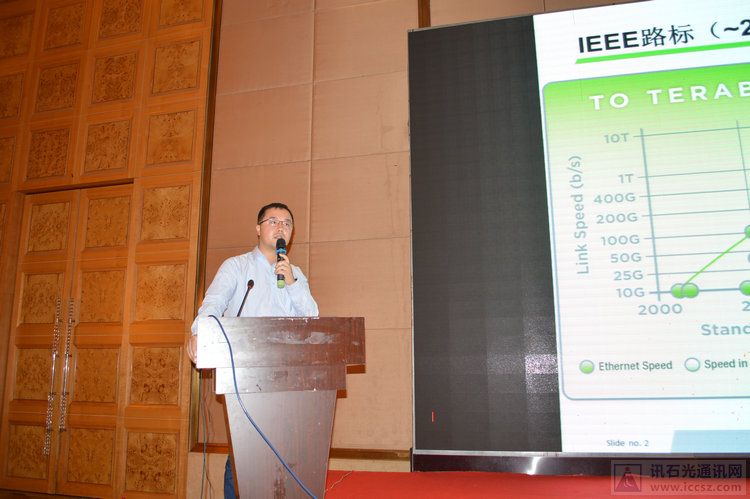 《高速光模塊發(fā)展情況》是索爾思光電資深產(chǎn)品經(jīng)理肖慶帶來的主題演講,其從高速光模塊的發(fā)展、應(yīng)用和市場等三個方面展開。肖慶在演講中對400G光模塊作了比較:CFP8體積和功耗最大,不適合交換機高密度應(yīng)用,主要用于電信市場;OSFP的體積和功耗介于CFP8和QSFP-DD之間,既可以支持交換機高密度的應(yīng)用,也可以支持電信市場的中長距離的應(yīng)用,目前市場應(yīng)用較少;QSFP-DD的體積和功耗最低,特別適合數(shù)通市場的高密度應(yīng)用,也開始逐漸替代CFP8進入電信應(yīng)用市場。而硅光模塊在40G出現(xiàn),在100G開始大量使用,在400G時代可能會成為主流。