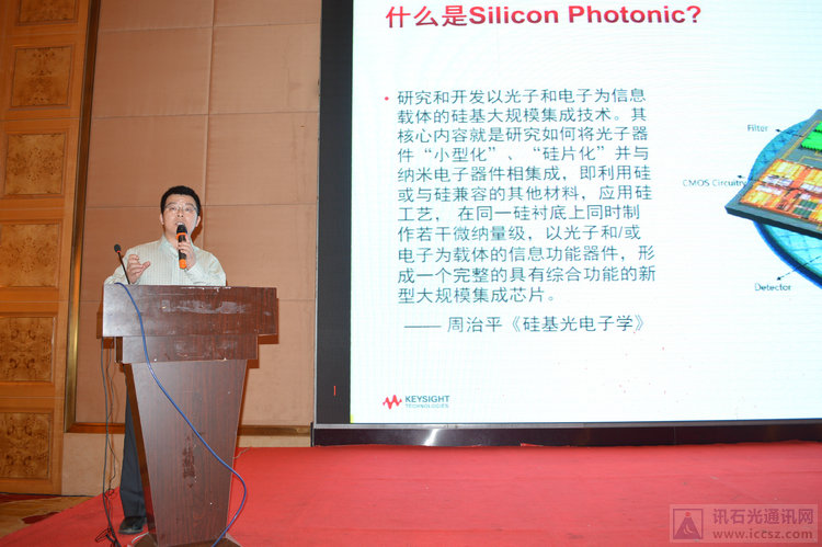 是德科技應(yīng)用工程師朱振華帶來的主題演講題目是《Silicon Photnics 硅光測試解決方案》,其帶來關(guān)于硅光測試的最新鮮資訊。爆發(fā)式的流量增長給光通信骨干網(wǎng)絡(luò)帶來很大的壓力,然而當(dāng)前基于 InP 和 GaAs 半導(dǎo)體材料制成的光芯片成本居高不下,卻制約了光通信線路容量對流量爆發(fā)的承載,以硅為半導(dǎo)體材料的硅基光電子技術(shù)應(yīng)運而生。硅光技術(shù)有望通過大規(guī)模半導(dǎo)體制造工藝(例如 CMOS)極大地降低光學(xué)收發(fā)器成本。此外,硅光技術(shù)同樣有望顯著降低光學(xué)收發(fā)器的能耗以及體積,而這一新方向的興起必然會對整個產(chǎn)業(yè)及測試帶來全新的挑戰(zhàn)。