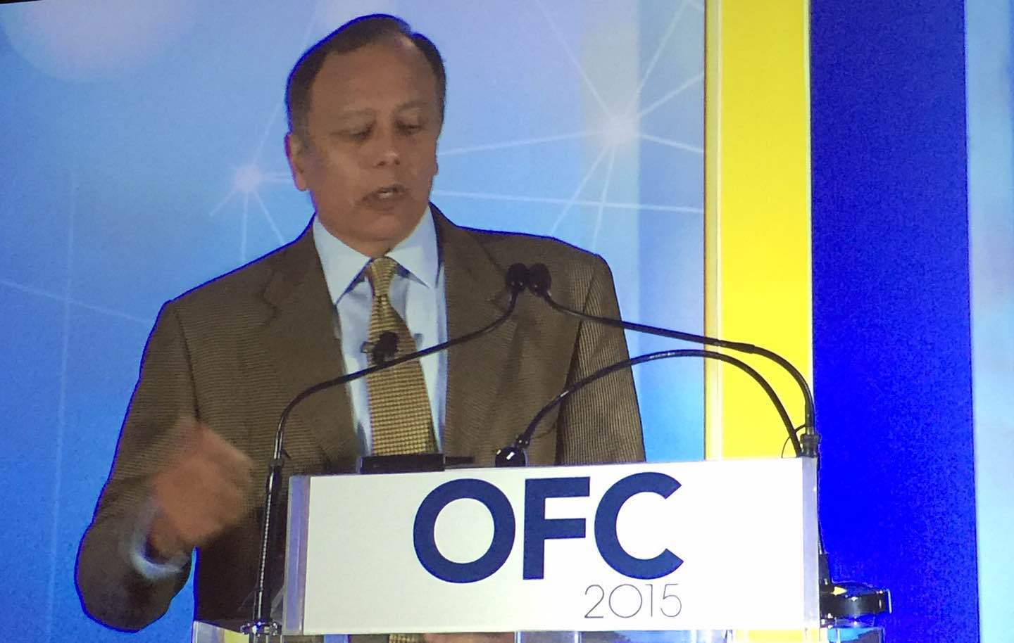 ICCSZ訊(編輯:Debi)美國光纖通訊展覽會(huì)及研討會(huì)(OFC) 于2015年3月24-26日在美國加州洛杉磯會(huì)展中心舉行,其中,技術(shù)研討會(huì)于3月22-26日舉行。本屆展會(huì)中國大陸及臺灣共117家企業(yè)參展,同比2014年增長19%。洛杉磯時(shí)間3月24日,訊石客戶從現(xiàn)場傳回以下圖片,敬請欣賞。特別鳴謝昂納華博、康寧陳皓經(jīng)理、廣州奧鑫市場部經(jīng)理劉琳等從現(xiàn)場傳回的圖片,也非常歡迎身在現(xiàn)場的您繼續(xù)為訊石提供更多圖片等信息!