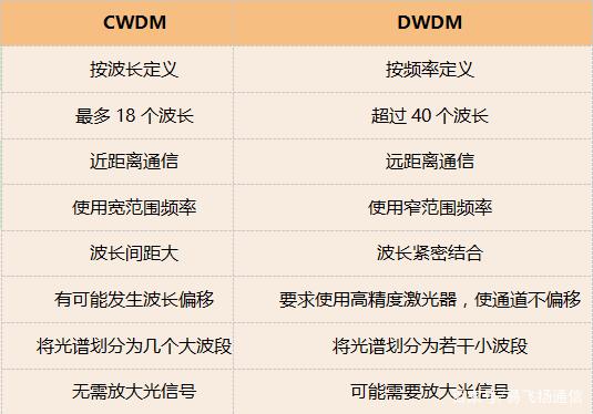 答:DWDM和CWDM的概念是相同的,即在一根光纖上使用多個不同的波長,但它們的波長間距、通道數(shù)量、傳輸距離和光空間中放大復(fù)用信號的能力不同。