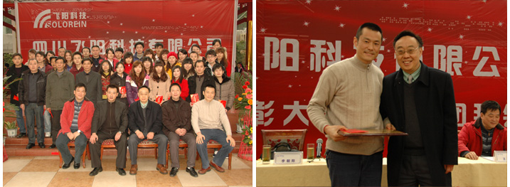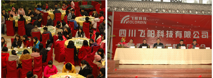 飛陽科技2011年迎新年會”正隆重舉行。公司總裁李朝陽博士、常務(wù)副總裁丁新松、監(jiān)察員王斌、生產(chǎn)運營總監(jiān)劉永廣、上市辦主任鄒斌蒞臨年會,與公司所有員工歡聚一堂,共同舉杯,喜迎新春!