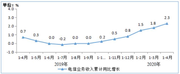 圖1 2019-2020年1-4月電信業(yè)務收入累計增速
