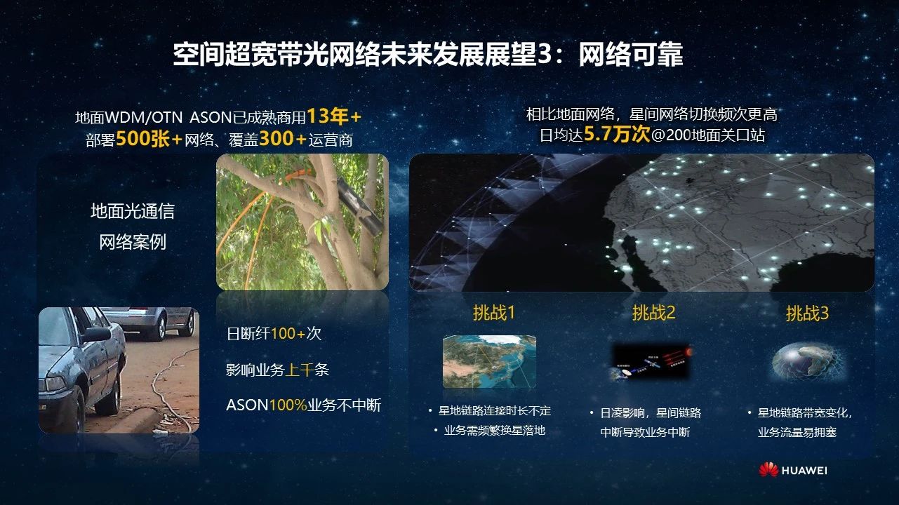 截至目前,地面WDM/OTN ASON(Automatically Switched Optical Network, 自動(dòng)交換光網(wǎng)絡(luò))已成熟商用超過13年,部署在300多全球運(yùn)營(yíng)商的500多張網(wǎng)絡(luò)上,全面解決了光纖頻繁中斷帶來的業(yè)務(wù)受影響等問題。與地面網(wǎng)絡(luò)相比,由于以下三個(gè)原因?qū)е滦情g網(wǎng)絡(luò)切換頻次更高, ASON技術(shù)上天成為提高空間光網(wǎng)絡(luò)可靠性的必要手段。