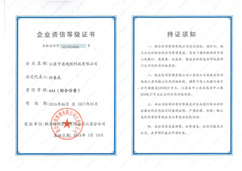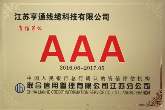 icssz訊 2016年3月,江蘇亨通線纜科技有限公司(以下簡稱:亨通線纜)通過國家資信評估權(quán)威江蘇聯(lián)合信用管理有限公司認定的“AAA”資信等級認定。