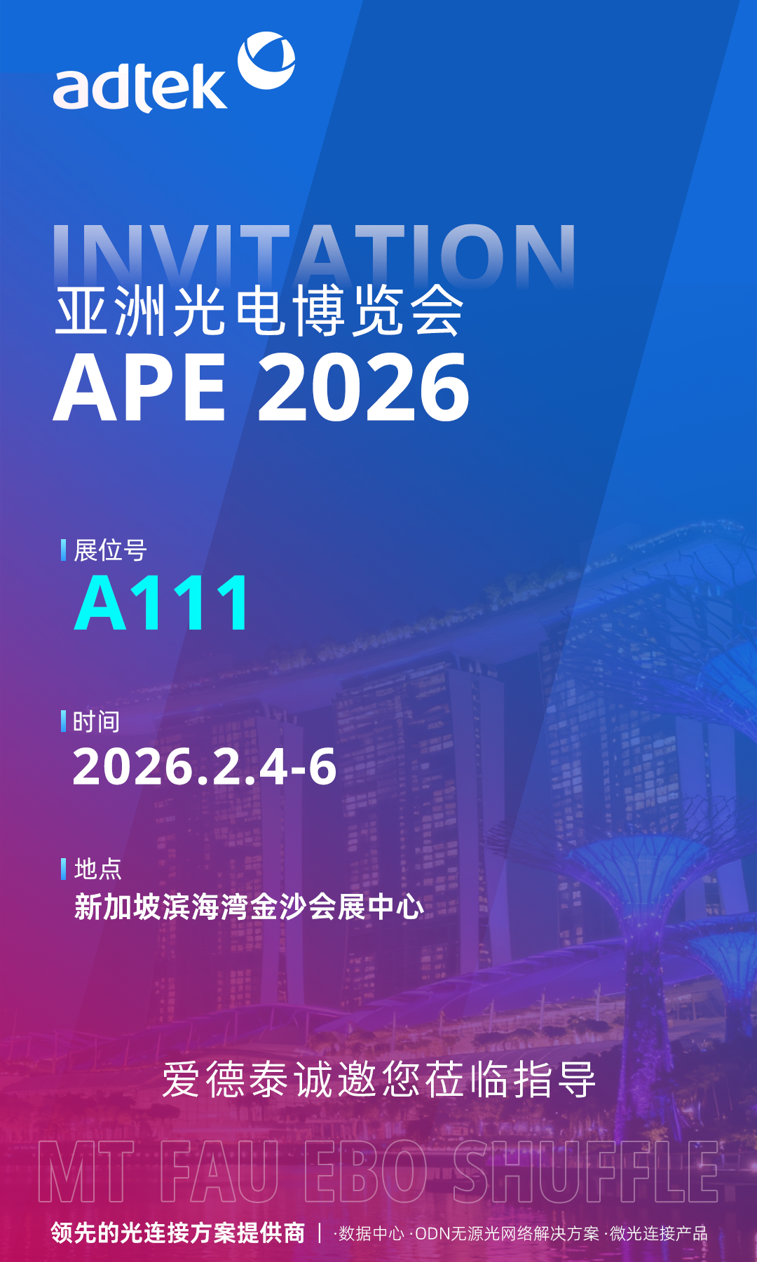 ICC訊 當(dāng)全球光電產(chǎn)業(yè)的目光再度聚焦于“東方十字路口”,一場(chǎng)鏈接未來(lái)算力與通信前沿的行業(yè)盛會(huì)——亞洲光電博覽會(huì)(APE 2026)將于2026年2月4日至6日在新加坡金沙會(huì)議展覽中心L1展廳隆重舉行。愛(ài)德泰誠(chéng)摯邀請(qǐng)全球行業(yè)伙伴蒞臨現(xiàn)場(chǎng),共同探索光電互聯(lián)的創(chuàng)新未來(lái)。