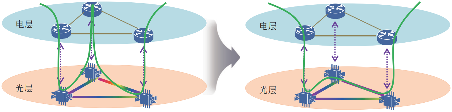 圖5 通過光電聯(lián)動(dòng)實(shí)現(xiàn)光層直通路由