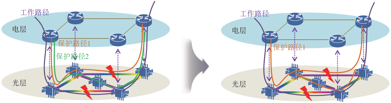 結(jié)合光層和電層技術(shù)特點(diǎn),光電聯(lián)動(dòng)全光網(wǎng)是干線傳輸網(wǎng)的演進(jìn)方向??紤]到光層技術(shù)能力限制,需在有小顆粒調(diào)度、信號(hào)再生、波長沖突的節(jié)點(diǎn)部署電交叉能力。同時(shí),在管控層面需引入光電兩層協(xié)同機(jī)制,實(shí)現(xiàn)光電深度融合的光電聯(lián)動(dòng)全光網(wǎng)。