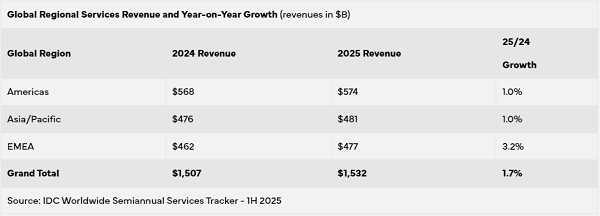 ICC訊 根據(jù)國際數(shù)據(jù)公司(IDC)《全球半年度電信服務(wù)追蹤報告》,2025年全球電信和付費電視服務(wù)支出將達到1.532萬億美元,同比增長1.7%。與今年早些時候的預(yù)測相比,此次最新預(yù)測略顯樂觀,因預(yù)計市場總值增長率將高出0.1個百分點。