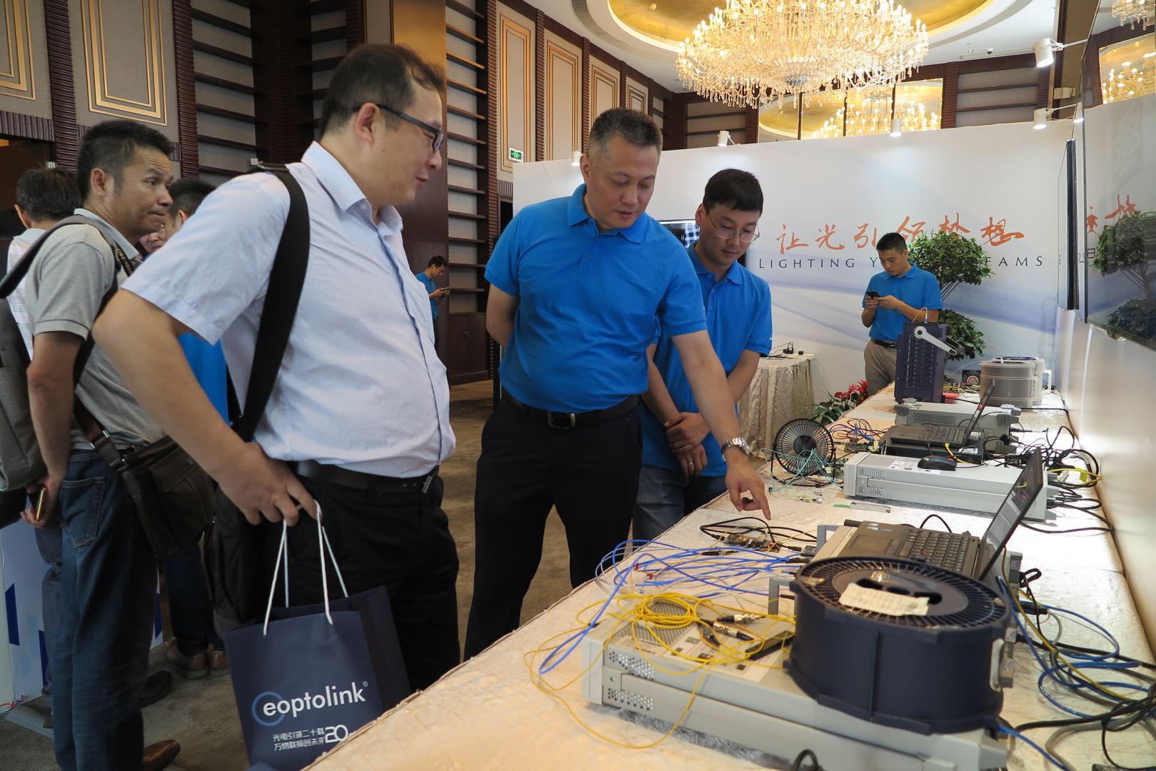 推介會(huì)邀請(qǐng)了眾多國(guó)內(nèi)外客戶參加,來自設(shè)備商、資訊商等專家蒞臨現(xiàn)場(chǎng)溝通咨詢,探討產(chǎn)品和技術(shù)未來趨勢(shì)。期間,光迅科技重點(diǎn)推介的400G OSFP SR8、50G PAM4 DWDM QSFP28、100G SFP-DD AOC、25G SFP28 Bidi等產(chǎn)品吸引專家紛紛駐足,成為本次推介會(huì)最閃亮的焦點(diǎn)。