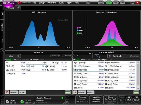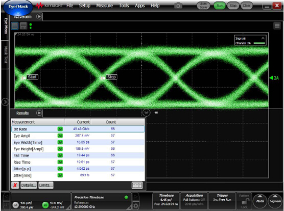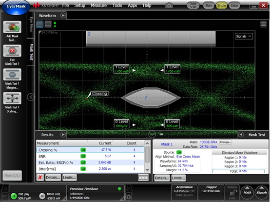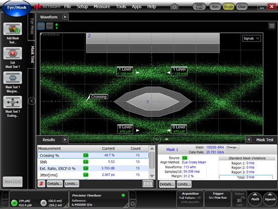 關鍵參數(shù)測試詳見下列圖表:(TX 光眼圖,RX 電眼圖,JETTER 測試圖,100M OM4 測試截圖)