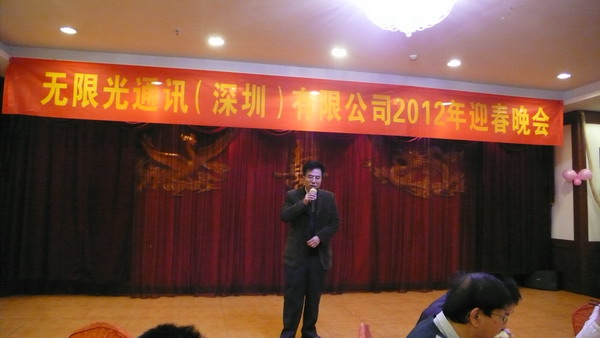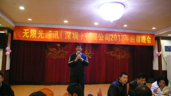 程總在新春祝詞說到:回顧2011,我們也經(jīng)歷了光通信市場(chǎng)的艱難時(shí)刻,無限光也走過了艱難的一程,特別是在年終時(shí)生意比較淡,但是無限光克服了困難,依然保持了足夠的出貨量,而2012年初我們是忙得不可開交,春節(jié)后訂單也會(huì)更多,這其中離不開全體員工的一起努力,一起堅(jiān)持,感謝大家能夠堅(jiān)守在自己的崗位上,為公司出力,感謝供應(yīng)商的支持,相信在迎來2012的同時(shí)將會(huì)迎來更多的訂單,同時(shí)期待來年大家繼續(xù)努力,共同發(fā)展,共同進(jìn)步!同時(shí)最后程總也呼吁大家春節(jié)回家好好休息團(tuán)聚,節(jié)后以更加充沛的精力投入到工作中,同時(shí)也歡迎介紹親朋好友過來工作,最后祝愿大家新春愉快!這也是一個(gè)特別的致辭,致辭中也反饋出程總對(duì)今年市場(chǎng)的積極樂觀,也期待更多人員的加入。