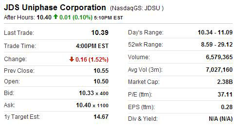 JDSU的股價目標定為14.75美元。8日收盤該公司股價收報10.55美元。