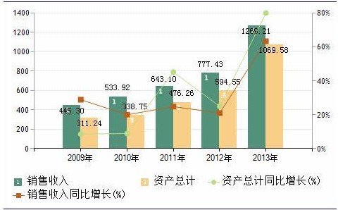 前瞻產(chǎn)業(yè)研究院發(fā)布的報(bào)告數(shù)據(jù)顯示,2013年行業(yè)實(shí)現(xiàn)銷售收入1269.21億元,同比增長63.26%,擁有資產(chǎn)總額1069.58億元,同比增長79.90%。預(yù)計(jì)2014年中國光纖光纜制造行業(yè)銷售規(guī)模將超過1300億元?!緜渥ⅲ?009-2013年中國光纖光纜制造行業(yè)銷售收入數(shù)據(jù)和同比增長率均來自國家統(tǒng)計(jì)局,2013年同比增長率較高的原因是納入統(tǒng)計(jì)范圍的行業(yè)企業(yè)數(shù)量大幅增加,同比增長了24.68%,而2012年的企業(yè)數(shù)量較2011年只增加了6.04%。】
