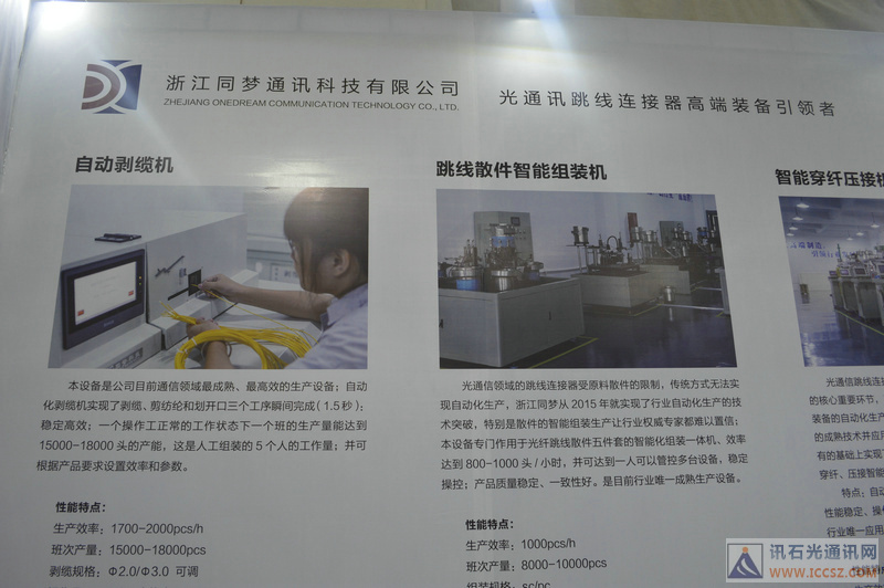 在本屆CIOE上,同夢通訊向業(yè)界展示的器件產(chǎn)品有各類型號規(guī)格的光纖連接器、光分路器、適配器,而業(yè)界領(lǐng)先的自動化設(shè)備有自動剝纜機、散件組裝機、穿纖壓接機、產(chǎn)品固化爐等,最近新推出了3D研磨機。