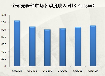 我們所重點(diǎn)關(guān)注的器件領(lǐng)域,從2008年9月金融海嘯爆發(fā)至今,已經(jīng)過(guò)去一年多。2009年第一季度,大部分光器件商遭遇訂單和收入的低谷。隨著經(jīng)濟(jì)漸趨穩(wěn)定,器件商們的訂單也開(kāi)始恢復(fù)增長(zhǎng),大部分器件商銷(xiāo)售收入環(huán)比溫和增長(zhǎng)。此外,金融危機(jī)也加速了光器件行業(yè)整合。2009年,Avanex與Bookham合并,Oclaro和Newport交換資產(chǎn),JDSU出售深圳工廠,收購(gòu)Finisar Network Tools業(yè)務(wù)。廠商們都在穩(wěn)固在各自領(lǐng)先市場(chǎng)的地位,并努力精簡(jiǎn)開(kāi)支,保留現(xiàn)金。