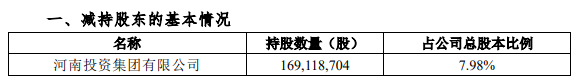 公告指出,本次減持原因乃經(jīng)營管理需要。截至公告披露日,河南投資集團(tuán)持有本公司股份169,118,704股,占本公司總股本比例7.98%。