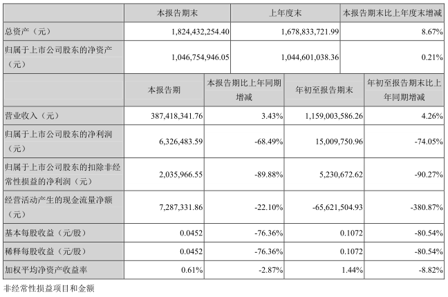 ICCSZ訊(編輯:Debi)10月23日晚間,東莞銘普光磁股份有限公司(銘普光磁,002902)發(fā)布2018年第三季度報(bào)告。2018年第三季度,銘普光磁實(shí)現(xiàn)營業(yè)收入3.87億元,同比增長3.43%;歸屬于上市公司股東的凈利潤632.64萬元,同比下降68.49%。而2018年前三季實(shí)現(xiàn)營業(yè)收入11.59億元,同比增長4.26%;歸屬于上市公司股東的凈利潤1500萬元,同比下降74.05%。