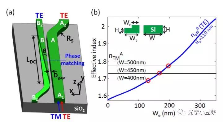 對(duì)于transceiver來講,其發(fā)送端可以保持工作在TE偏振下,但是當(dāng)光經(jīng)過光纖傳輸后,到達(dá)發(fā)送端的光場(chǎng)偏振狀態(tài)已經(jīng)發(fā)生了變化,部分光變成了TM光。為了解決這一問題,人們提出了多種片上偏振相關(guān)器件。