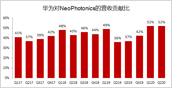 Jenks表示:“我們預計來自華為的營收占比將因此縮小,因為在過去的一年里,由于華為在積累戰(zhàn)略庫存,我們的營收中華為所占比例高于正常水平?!睋烙?,正常情況下,華為對NeoPhotonics營收的貢獻比在30%-40%之間,但過去一年達到50%左右。“現在,展望下一個季度和明年,我們預計華為對公司的營收貢獻比可能會發(fā)生變化。”暗示華為在某些市場可能會面臨下滑。
