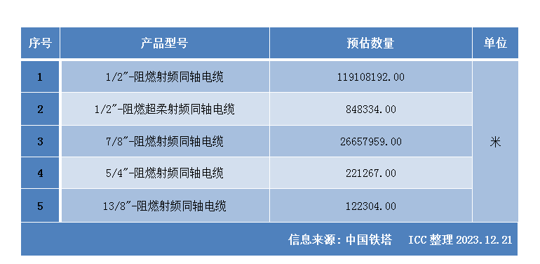 ICC訊 日前,中國鐵塔官方發(fā)布招標(biāo)公告,稱中國鐵塔2024年饋線產(chǎn)品集中采購項(xiàng)目已具備招標(biāo)條件,現(xiàn)進(jìn)行公開招標(biāo)。