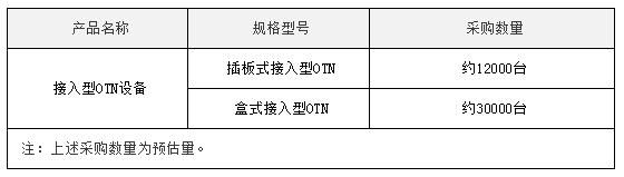 ICCSZ訊(編輯:Debi)4月3日,中國電信啟動接入型OTN設備(2019年)集中采購項目,采購插板式接入型OTN約12000臺,盒式接入型OTN約30000臺。