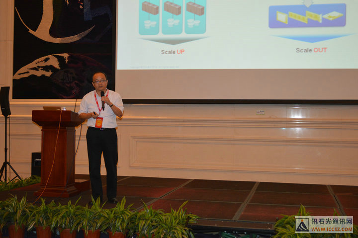 同樣從數(shù)據(jù)中心講起的還有科銳安上海研發(fā)中心總經(jīng)理和副總裁郁鈞,他的主題為《適應(yīng)數(shù)據(jù)中心的光通信架構(gòu)》。郁總首先說(shuō)明了傳統(tǒng)服務(wù)器與現(xiàn)在的相差無(wú)幾,然而數(shù)據(jù)中心的構(gòu)造則發(fā)生了巨大的變化;他表示以前是傳輸層帶來(lái)驅(qū)動(dòng),現(xiàn)在則主要是應(yīng)用層面帶來(lái)的主要的驅(qū)動(dòng);接著,郁總像我們介紹了數(shù)據(jù)中心的流量走向,他說(shuō)明數(shù)據(jù)中心之間也有相當(dāng)大的流量,即東西走向流量;數(shù)據(jù)中心之間的流量,也發(fā)生在不同的運(yùn)營(yíng)商之間。郁總表示,數(shù)據(jù)中心的崛起,標(biāo)志著軟件與硬件的分離,這將會(huì)產(chǎn)生很多新的發(fā)展機(jī)會(huì),催生新的需求;最后他提及SDN的發(fā)展將對(duì)通信行業(yè)發(fā)展產(chǎn)生深遠(yuǎn)的影響。
