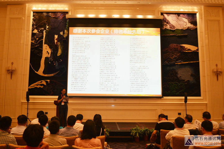 ICCSZ訊    大鵬一日同風(fēng)起,展翅翱翔天地間;訊石風(fēng)雨十五載,同舟共濟(jì)光互聯(lián)。2016年9月4-5日,由訊石信息咨詢(深圳)有限公司主辦的訊石第十五屆光纖通訊市場(chǎng)暨技術(shù)專題研討會(huì)(簡(jiǎn)稱“訊石研討會(huì)”)在深圳麒麟山莊圓滿舉辦,本屆研討會(huì)吸引了160余家企業(yè)、機(jī)構(gòu)的近400人的熱情參與,會(huì)議現(xiàn)場(chǎng)群賢畢至,高朋滿座。