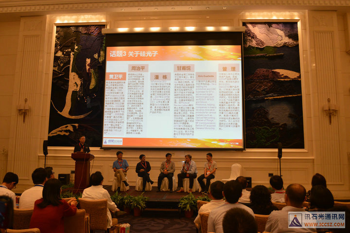最后一個(gè)論壇話題是最近大火的“硅光子”,它有望將從In-Rack到Across Data center不同距離連接之帶寬提升到100Gb/s,成為100Gb/s的必備解決方案。這一話題由青島海信電器股份有限公司首席科學(xué)家黃衛(wèi)平主持,SiFotonics CEO潘棟、北京大學(xué)教授周治平、中科院上海微系統(tǒng)所研究員甘甫烷、ST數(shù)字產(chǎn)品事業(yè)部亞太區(qū)市場(chǎng)總監(jiān)Kirk Ouellette 、華為固定網(wǎng)絡(luò)研究部主任工程師曾理皆參與討論。