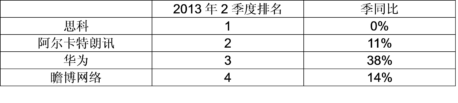 思科、阿爾卡特朗訊、華為和瞻博網(wǎng)絡(luò)是服務(wù)供應(yīng)商邊緣路由器和交換機市場的領(lǐng)先者,二季度它們的收入占該市場總收入的88%。在2013年2季度的排名中,思科蟬聯(lián)第一,阿爾卡特朗訊、華為和瞻博網(wǎng)絡(luò)則分別位列第二、第三和第四。