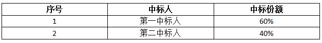 本項目不劃分標包,確定2個中標人,中標份額如下