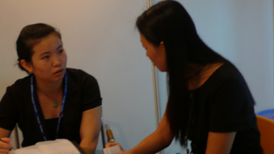 艾文科技(香港)有限公司副總經理史向東小姐(右)在接受訊石記者訪問