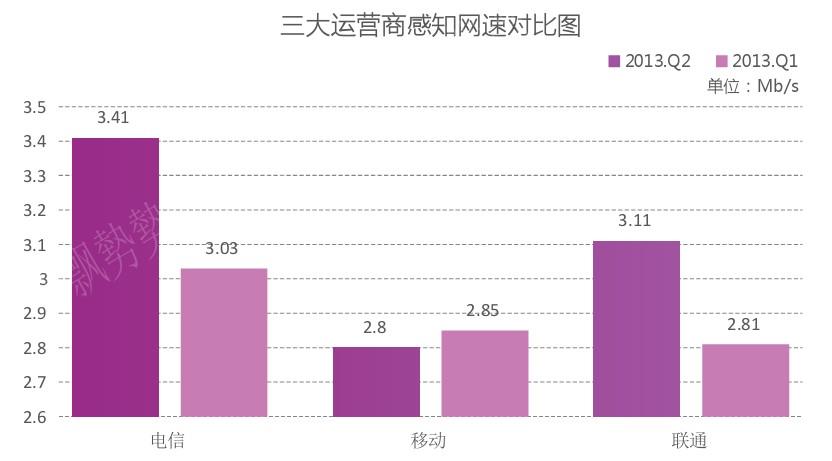 【訊石光通訊咨詢網(wǎng)】據(jù)藍汛ChinaCache(以下簡稱“藍汛”)最新發(fā)布的2013年第二季度全國互聯(lián)網(wǎng)感知數(shù)據(jù)報告顯示,對比三家運營商感知網(wǎng)速得出,電信平均網(wǎng)速最高,聯(lián)通次之,移動最低。
