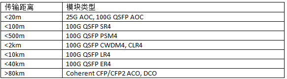 對(duì)于光模塊而言,應(yīng)用在什么交換機(jī)上不重要,重要的是根據(jù)距離選擇合適的模塊類型,以100G為例: