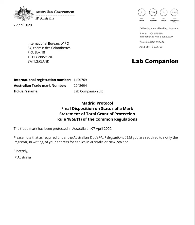 宏展科技Lab Companion在澳大利亞注冊成功