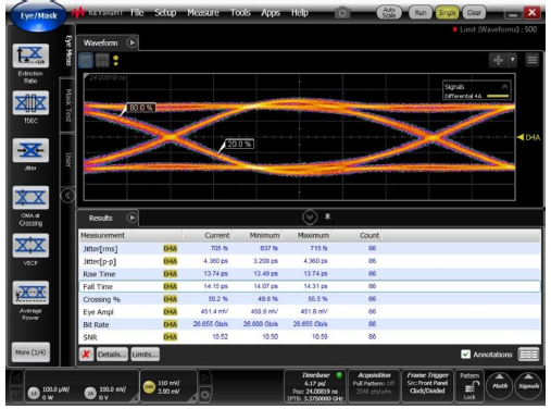 體積小巧但性能穩(wěn)定的1504 和2904 已在美國被廣泛的大中型光器件生長廠商接受并在量產(chǎn)線上使用,有了廣泛性和長期穩(wěn)定性的考驗(yàn)。 與其他市場上的生產(chǎn)型誤碼儀不同的是,ESOR Engineering 的1504 (40G)和2904(100)誤碼儀提供給使用者連續(xù)性的頻率點(diǎn)測試。另外,1504 和2904 都具備強(qiáng)大的眼圖測試,顯示和實(shí)際數(shù)據(jù)顯示的功能。 這些功能不僅讓1504 和2904 的用戶有質(zhì)上的測試判斷更有的量上精確程度的把關(guān)。
