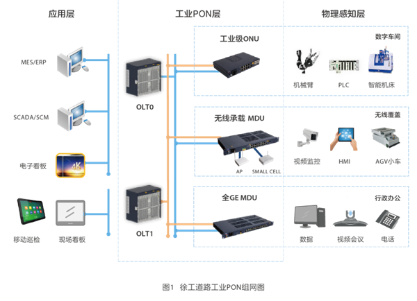 基于企業(yè)數(shù)字智能化工廠內(nèi)網(wǎng)絡(luò)要求綜合考慮,徐工道路深入分析傳統(tǒng)工業(yè)以太網(wǎng)和工業(yè)PON改造模式優(yōu)劣,經(jīng)過車間現(xiàn)網(wǎng)應(yīng)用驗證比較,最終確定全廠內(nèi)網(wǎng)采用工業(yè)PON改造,由中國電信承建,中興通訊提供工業(yè)PON設(shè)備與技術(shù),雙方合作實施改造項目。
