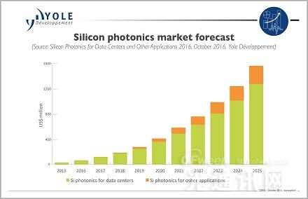 來自Yole的Eric Mounier表示:“硅光子已經(jīng)達(dá)到了大規(guī)模增長(zhǎng)之前的臨界點(diǎn)。”