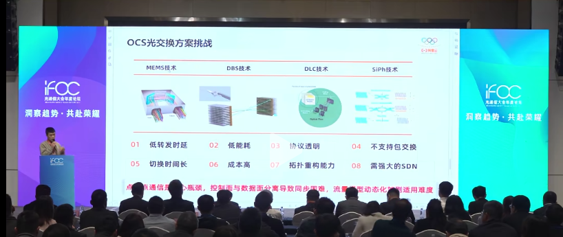 然而,盡管OCS在北美市場(chǎng)持續(xù)升溫,其在國內(nèi)的規(guī)?;涞厝悦媾R多重現(xiàn)實(shí)制約。從技術(shù)成熟度來看,OCS在Scale-up場(chǎng)景中的適配性仍存疑。阿里云在訊石IFOC 2025年度光通信大會(huì)上表示,OCS在當(dāng)前階段難以滿足高性能計(jì)算對(duì)鏈路切換速度和通信模式靈活性的要求?;贛EMS的方案切換時(shí)間在數(shù)十毫秒級(jí)別,整體指令下發(fā)至完成往往達(dá)到秒級(jí),遠(yuǎn)低于電交換機(jī)在微秒級(jí)的響應(yīng)能力。同時(shí),OCS受限于物理層連接特性,難以支持從單點(diǎn)到多點(diǎn)的并發(fā)通信模式,這與Scale-up場(chǎng)景中動(dòng)態(tài)變化的流量模型存在結(jié)構(gòu)性矛盾??刂泼媾c數(shù)據(jù)面分離帶來的額外響應(yīng)延遲,也使得其在面對(duì)訓(xùn)練、推理等多模式切換時(shí)面臨制約。