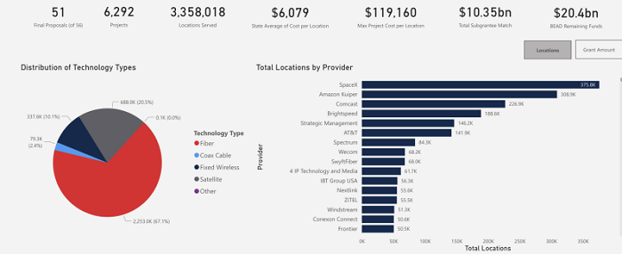 值得注意的是,衛(wèi)星運營商SpaceX和亞馬遜柯伊伯將承接其中20.5%的選址。柯伊伯雖尚未建立商業(yè)衛(wèi)星網(wǎng)絡(luò),但根據(jù)BEAD規(guī)定,供應(yīng)商在獲得資助后四年內(nèi)提供服務(wù)即可滿足要求。