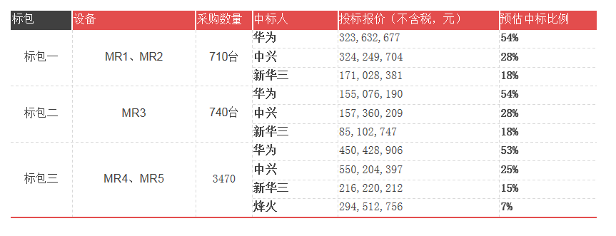 ICC訊(編輯:Jane)3月27日,中國(guó)聯(lián)通采購與招標(biāo)網(wǎng)公布了2020年智能城域網(wǎng)核心匯聚設(shè)備集中采購結(jié)果。國(guó)內(nèi)設(shè)備商華為、中興、華三、烽火中標(biāo),總報(bào)價(jià)為27.28億元。根據(jù)公告發(fā)布,中標(biāo)內(nèi)容如下: