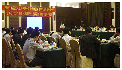 蘇州工業(yè)園區(qū)光電通信產(chǎn)業(yè)聯(lián)盟協(xié)會(huì)(SIPOCIA)成立于2009年8月28日,是由蘇州地區(qū)光電通信領(lǐng)域的企事業(yè)單位及專家學(xué)者共同發(fā)起成立,每年都會(huì)由協(xié)會(huì)組織各種交流活動(dòng)。協(xié)會(huì)成員包括研發(fā)和生產(chǎn)用于全球領(lǐng)先的智能化光網(wǎng)絡(luò)(ROADM)的核心部件WSS(波長可選光開關(guān))及子系統(tǒng)的科納技術(shù)、開發(fā)光通信傳輸轉(zhuǎn)換模塊及子系統(tǒng)的旭創(chuàng)科技、光電產(chǎn)品制造商奧達(dá)電子、開發(fā)帶系統(tǒng)功能的光通信傳輸轉(zhuǎn)換模塊的百維通以及開發(fā)高性能以太網(wǎng)路由交換設(shè)備的盛科網(wǎng)絡(luò)等。