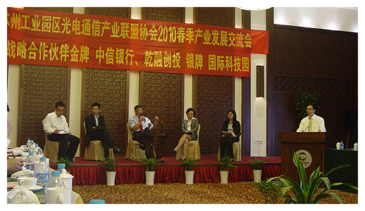 活動(dòng)開始,蘇州光電通信產(chǎn)業(yè)聯(lián)盟會(huì)長、科納技術(shù)總經(jīng)理劉文蔚致開幕詞,緊接著本次活動(dòng)的合作伙伴中信銀行和蘇州乾隆創(chuàng)投代表進(jìn)行了發(fā)言,本次活動(dòng)也得到了蘇州市政府的大力支持,蘇州市科技局副局長吳偉澎也出席了本次活動(dòng)并致辭,他在致辭中指出:“蘇州市政府很關(guān)注區(qū)域經(jīng)濟(jì)的發(fā)展,在園區(qū)創(chuàng)新完善方面做了很多工作,積極支持科技創(chuàng)新,也祝愿光電協(xié)會(huì)不斷的成長壯大”。本次交流會(huì)活動(dòng)分為主題講座和公開討論兩大環(huán)節(jié),主題講座由訊石信息咨詢(深圳)有限公司市場(chǎng)分析師吳娜主講,報(bào)告主題為《全球光通訊市場(chǎng)現(xiàn)狀分析及預(yù)測(cè)》。公開討論發(fā)分為兩大主題,分別是FTTH&三網(wǎng)融合最新進(jìn)展,光通訊企業(yè)融資及上市前景,分別由業(yè)內(nèi)資深專家,企業(yè)家和行業(yè)專業(yè)人士組成,論壇討論環(huán)節(jié)積極熱烈。