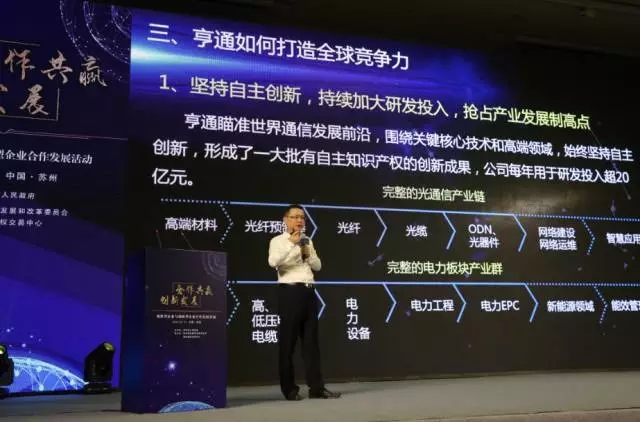 ICCSZ訊 7月11日上午,由蘇州市人民政府主辦,蘇州市發(fā)改委、蘇州股權(quán)交易中心承辦的“規(guī)模型企業(yè)與創(chuàng)新型企業(yè)合作發(fā)展活動”在蘇州工業(yè)園區(qū)成功舉辦。亨通集團執(zhí)行總裁錢建林受邀出席活動,作了題為《創(chuàng)新驅(qū)動 自我變革,產(chǎn)生“裂變”激發(fā)亨通發(fā)展新動能》的演講,并參加了規(guī)模型與創(chuàng)新型企業(yè)現(xiàn)場對話論壇。