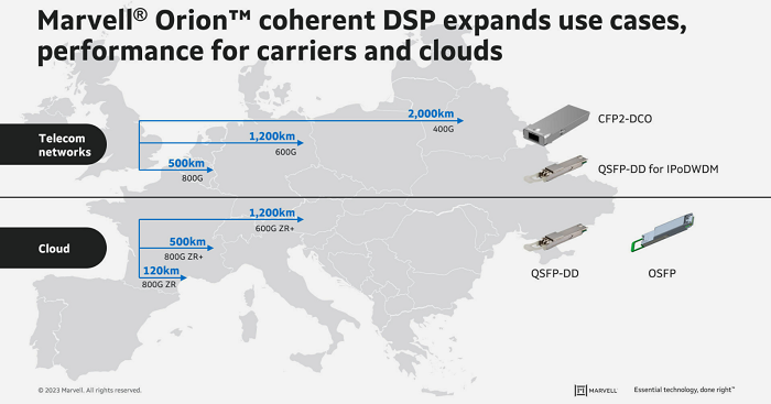 Orion擴大了在更多用例中部署基于DSP的相干模塊的機會,包括800Gbps城域網絡、600Gbps區(qū)域網絡、400Gbps長途網絡和800Gbps數據中心互連。